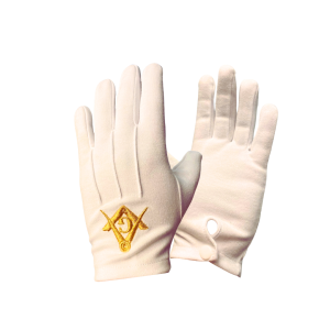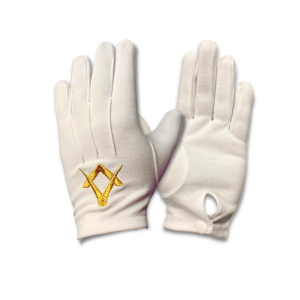 Masonic White 100% Cotton Gloves with Golden Square & Compass Embroidery