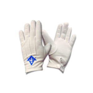 Masonic White 100% Cotton Gloves with Royal Blue Square & Compass and letter “G” Embroidery